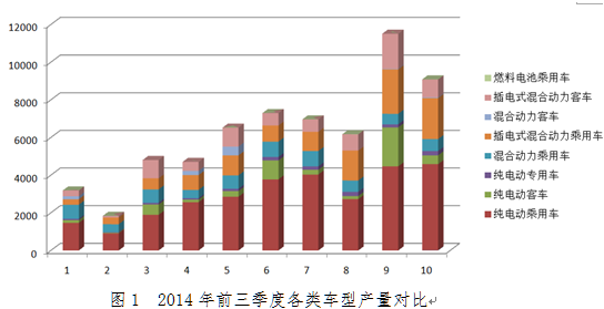 2014年10月,國(guó)內(nèi)節(jié)能與新能源汽車(chē)產(chǎn)量為9076輛,較上月回落超過(guò)20%,其中跌幅最大的是純電動(dòng)客車(chē),不過(guò)即便如此,10月產(chǎn)量仍列本年單月產(chǎn)量第二位,僅次于上月。在新能源汽車(chē)方面,本月生產(chǎn)各類(lèi)新能源汽車(chē)8415輛,(含公告內(nèi)鉛酸純電動(dòng)乘用車(chē)864輛,鉛酸純電動(dòng)專(zhuān)用車(chē)40輛,鋰電新能源汽車(chē)共生產(chǎn)7511輛)。