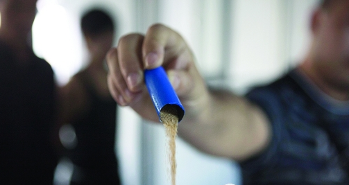 說是車間,其實就是一個100多平方米的屋子,兩條小的生產(chǎn)線,有十多名工人在其中,分成了幾道工序,先是將幾塊電池并排,正負極兩側(cè)各放一條金屬板,然后將引線焊接在電路板上,隨后裝入充電寶的包裝盒里,就是一個成品了!在成品包裝上,南都記者看到,有夏新、電二哥,還有小米的牌子。工作人員打開一個裝好的充電寶,發(fā)現(xiàn)里面有6個電池,撬開電池之后,發(fā)現(xiàn)竟然有3個是裝滿了沙子的假貨。諷刺的是,車間的墻上還貼著“每天自我檢討,品質(zhì)自然更好”的標語。