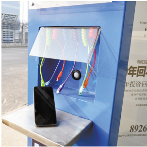 10日下午,走在保定市朝陽(yáng)北大街上看到,路邊距離公交站牌不遠(yuǎn)處,一座頂著太陽(yáng)能電池板的免費(fèi)充電樁很是惹眼。在充電樁的充電窗口位置,設(shè)有六條充電線,其中兩條是蘋(píng)果手機(jī)端口樣式,另外四條則是安卓手機(jī)端口樣式。正在給自己手機(jī)充電的小王說(shuō),他是個(gè)低頭族,每天玩微信、刷微博手不離機(jī)。雖說(shuō)特意購(gòu)買了大容量電池的手機(jī),還配了移動(dòng)電源,但走在大街上手機(jī)沒(méi)電的時(shí)候也常有。今天出來(lái)辦事走得匆忙,手機(jī)眼看就要沒(méi)電了,于是利用等公交車的時(shí)間給手機(jī)充電。“這個(gè)充電樁很給力,如果功能多些就更好了,比如具有免費(fèi)WIFI功能。”小王憧憬地說(shuō)。