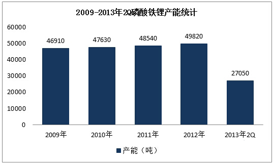 圖表1:2009-2013年2Q磷酸鐵鋰產(chǎn)能統(tǒng)計(jì)