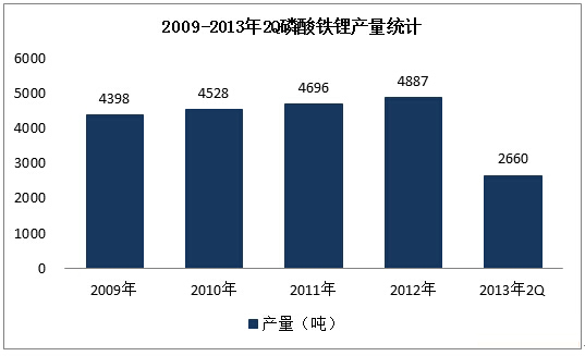 圖表2:2009-2013年2Q磷酸鐵鋰產(chǎn)量統(tǒng)計(jì)