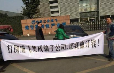12月15日,成飛集成復(fù)牌連續(xù)三日跌停,部分融資股東業(yè)已遭受巨量損失,成批前往成飛集成總部聲討。