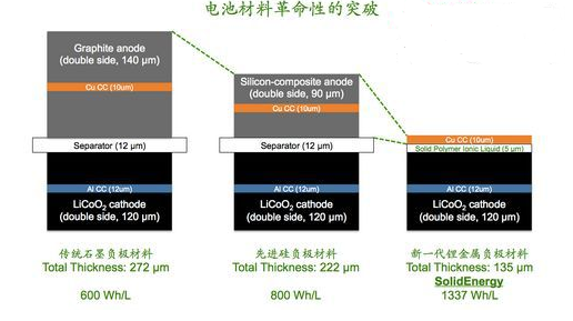 制約智能硬件更進一步發(fā)展的瓶頸問題 - 電池技術,最近在美國麻省理工大學(MIT)取得革命性突破。新研發(fā)出來的“無負極電池”將顛覆沉寂了20多年的傳統(tǒng)鋰電池行業(yè),并有望在未來1-2年內投入使用,使得智能手機變得薄如卡片,手機待機時間和電動車續(xù)航里程翻翻,而且電池價格變得更低。這種第三代鋰電池使用一種超薄到近乎沒有的金屬負極和更加安全的電解液。根據美國權威的獨立電池測試實驗室A123 公司今年十月份的驗證,它的2Ah產品原型的能量密度達到了每升1337瓦時(Wh/L),這超過了目前蘋果、三星,小米和特斯拉電池能量密度的2倍,這一項成果突破了目前世界最高記錄,還獲得了包括美國 R&D100 獎(科技創(chuàng)新的奧斯卡)和美國能源部清潔能源獎等一系列知名的科技創(chuàng)新獎項。