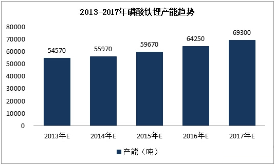 圖表1:2013-2017年磷酸鐵鋰產(chǎn)能趨勢