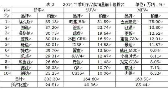 2014年,中國(guó)品牌乘用車(chē)共銷(xiāo)售757.33萬(wàn)輛,同比增長(zhǎng)4.10%,占乘用車(chē)銷(xiāo)售總量的38.44%,占有率比上年同期下降2.14個(gè)百分點(diǎn)。德系、日系、美系、韓系和法系乘用車(chē)分別銷(xiāo)售394.09萬(wàn)輛、309.52萬(wàn)輛、252.55萬(wàn)輛、176.61萬(wàn)輛和72.70萬(wàn)輛,分別占乘用車(chē)銷(xiāo)售總量的20%、15.71%、12.82%、8.96%和3.69%。與上年同期相比,日系乘用車(chē)銷(xiāo)量增速略低,其他外國(guó)品牌增速均超過(guò)10%。