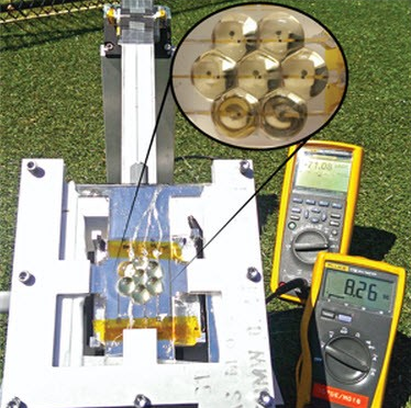 據(jù)Giebink研究室介紹,電池單元一天的移動(dòng)距離約為1cm。這樣,每天可以實(shí)現(xiàn)8小時(shí)的光伏發(fā)電。理論上的聚光倍率高達(dá)200倍以上。Giebink研究室實(shí)際制作的電池板由于3D打印機(jī)的制作精度較低,聚光倍率只有100倍以上。