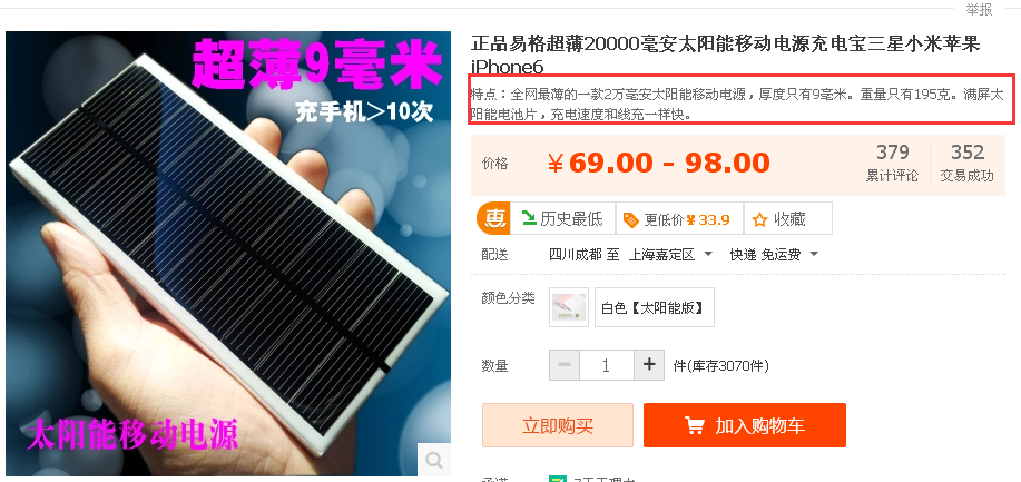在京東、淘寶等電商平臺,只要輸入“太陽能移動充電寶”關(guān)鍵詞,彈出的寶貝多得讓人眼花繚亂,僅京東上就多達(dá)480余款,零售價從幾十到數(shù)百元不等。關(guān)注下面的點(diǎn)評,卻會發(fā)現(xiàn),不少購買后的用戶都在抱怨,所謂太陽能充電不是太慢就是完全充不上。其中,最受關(guān)注的是易格太陽能充電寶。