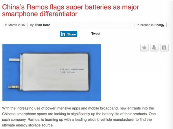 根據(jù)外媒iTWire近日透露的消息,國內(nèi)平板電腦設(shè)計制造商藍(lán)魔(Ramos)或?qū)⒃谄涠ㄓ诮衲晖瞥龅氖卓钪悄苁謾C(jī)產(chǎn)品上搭載800Wh/L超高能量密度、容量4850mAh的超級電池。此前,藍(lán)魔就有在平板電腦產(chǎn)品上采用行業(yè)領(lǐng)先的電池技術(shù)的先例。有鑒于藍(lán)魔與國內(nèi)最大的新能源汽車制造商和鋰電池制造商比亞迪頗有淵源的關(guān)系,iTWire還猜測,此款超級電池的優(yōu)勢技術(shù),很可能就直接來自于比亞迪。