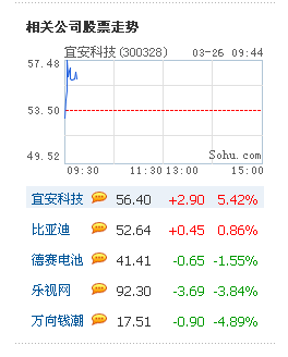 這意味著,在政策支持和發(fā)展配合的雙重利好下,A股新能源汽車及相關(guān)板塊或迎來爆發(fā)機遇。因此,比亞迪、德賽電池、宜安科技等新能源汽車概念股以及樂視網(wǎng)、萬向錢潮、中國寶安等邊緣概念股將成為市場熱點,有望走強。