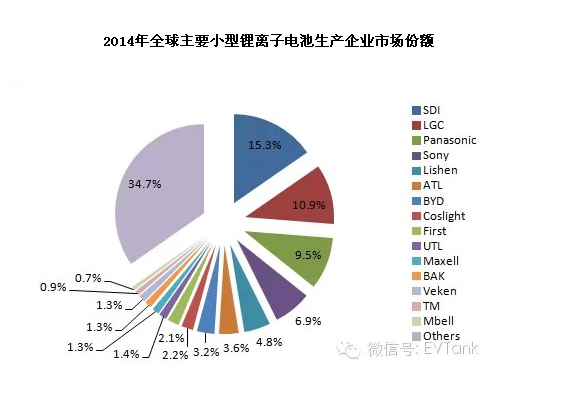EVTank分析認(rèn)為,統(tǒng)計數(shù)據(jù)的差異主要在于其他機構(gòu)針對中國市場基本只統(tǒng)計了前五大企業(yè)的出貨量,而中國小型鋰離子電池生產(chǎn)企業(yè)眾多,除了ATL、力神、BYD、BAK和Coslight之外,還有諸如江西福斯特、深圳創(chuàng)明、優(yōu)特利、天貿(mào)、美拜、深圳卓能、德朗能、蘇州星恒等年產(chǎn)量在1億只左右的企業(yè)。從主要中日韓三國來看,中國小型鋰離子電池的產(chǎn)量遠(yuǎn)高于其他國家,但是中國企業(yè)眾多,尚未出現(xiàn)能與韓國三星、LG和日本的松下抗衡的小型鋰離子電池制造企業(yè)。