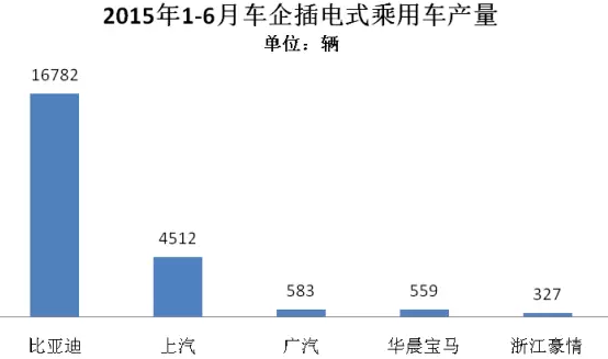 2015年1-6月,插電式混合動力乘用車生產(chǎn)2.04萬輛,同比增長4倍。插電式乘用車在所有新能源車型中增長速度最快。