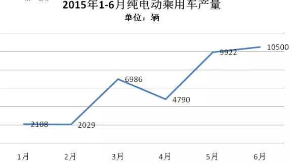 2015年1-6月,純電動乘用車生產(chǎn)3.63萬輛,接近去年全年3.78萬輛的產(chǎn)量,同比增長3倍。
