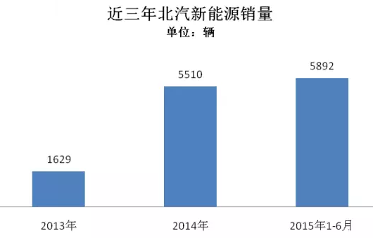 根據(jù)乘聯(lián)會數(shù)據(jù)統(tǒng)計,北汽新能源2015年1-6月累計銷售新能源乘用車5892輛。北汽新能源堅持純電動技術(shù)路線,推出的新能源車型包括E150EV、EV200、EV160、ES210等均為純電動車型。2014年銷量為5510輛,2013年銷量為1629輛。