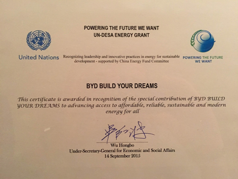 比亞迪榮獲“聯(lián)合國能源特別獎”