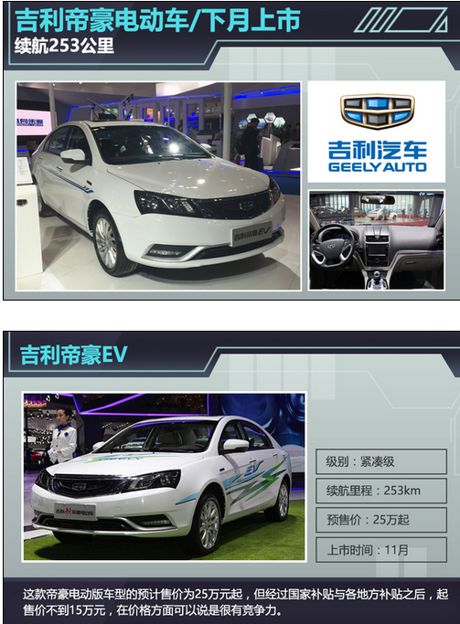 吉利汽車今年前三季度的銷量累計達到了35.54萬輛,已經(jīng)完成全年45萬輛銷量目標的79%,其中帝豪系列轎車的銷量就占了近4成份額。根據(jù)吉利汽車的規(guī)劃,之后還將對帝豪進行換代以及推出帝豪RS和帝豪電動版等衍生車型。近日,網(wǎng)通社從吉利汽車官方獲悉,吉利帝豪電動車將于下月開幕的廣州車展上正式上市,續(xù)航里程可達253公里。