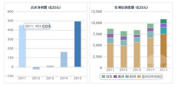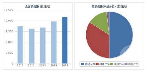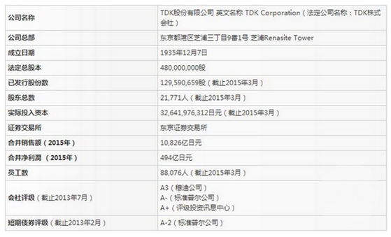 截止到2015年底日本TDK的合并收入圖表