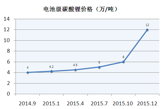 2015年,是鋰電池市場行業(yè)爆發(fā)年,特別是10月份以來,政策的推動等相關(guān)影響,鋰電關(guān)鍵原材料碳酸鋰和六氟磷酸鋰價格也相繼上漲,進(jìn)入2016年第一周,原材料碳酸鋰價格繼續(xù)保持增長態(tài)勢,截至目前,行業(yè)均價已超過14.5萬/噸。