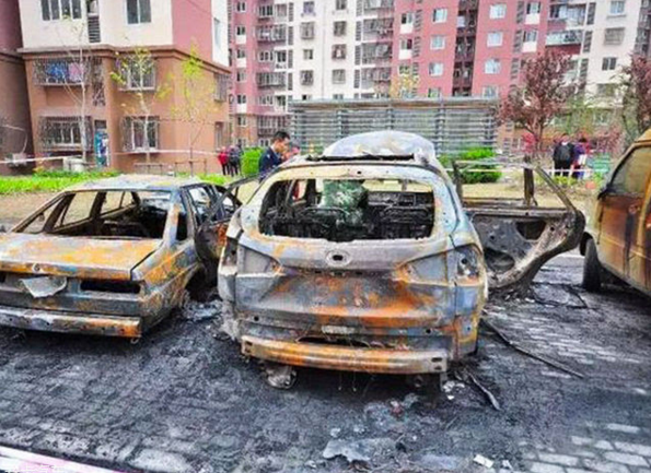 根據(jù)車主的描述:當(dāng)天晚上9點30分左右車主像往常一樣準備停車,在把擋位推到P擋時一切還沒什么異常,但在按下一鍵啟停開關(guān)后,前引擎艙突然閃出了火光。之后聽到了幾聲爆炸聲并且發(fā)動機艙中竄出了火苗。報警后119趕到了現(xiàn)場,撲滅了著火的比亞迪。城門失火殃及池魚,由于周圍的車輛停放的比較密集,左右兩邊的桑塔納和箱式小貨車都沒能幸免。