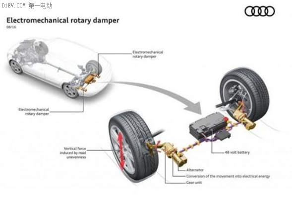 據(jù)外媒Digital Trends報(bào)道,奧迪已經(jīng)把利用汽車減震器發(fā)電的系統(tǒng)做出來了,這個(gè)尚處原型階段的系統(tǒng)被命名為eROT,它能與一套48V的車載供電系統(tǒng)協(xié)同工作。奧迪表示,這種能量回收懸掛系統(tǒng)既能為車輛提供額外的電能,又能增加懸架的可調(diào)性,可謂一箭雙雕。