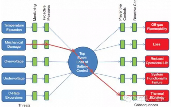 整個分析只是為了匹配電池系統(tǒng)著火這個極端事件產生的,我們就區(qū)隔出由機械濫用的內容,電池系統(tǒng)的設計基礎是著眼于放在一個車輛比較安全的位置,防止在車輛使用過程中出現問題,整個機械設計固然是目前大量做針刺、擠壓等實驗安全性的內容,但實際上由機械濫用引起的問題反而成為大家容易解決的問題。