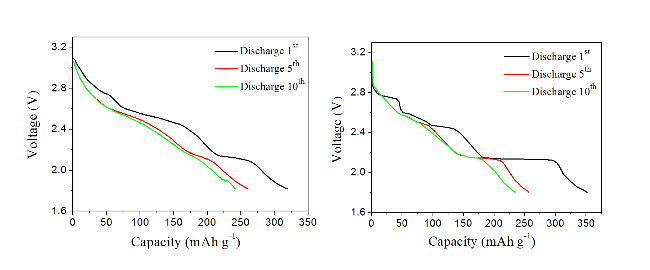 商業(yè)化(左)和大規(guī)模制備(右)的V6O13放電曲線