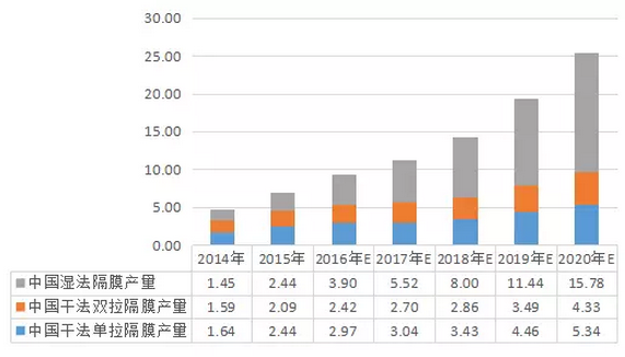 濕法隔膜規(guī)模增速遠(yuǎn)超干法隔膜