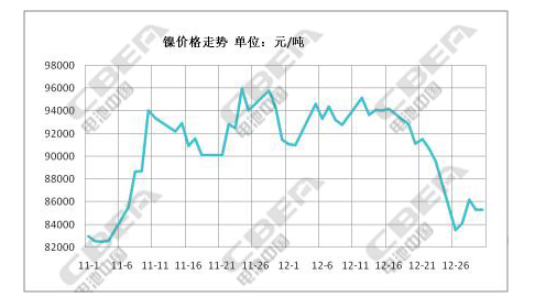 2016年11月、12月鎳的價(jià)格走勢圖