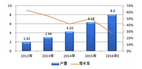 根據(jù)某機(jī)構(gòu)研究相關(guān)數(shù)據(jù)顯示,2015年中國(guó)隔膜出貨量6.28億平米,同比增長(zhǎng)49.5%,其中,濕法隔膜產(chǎn)量達(dá)到2.38億平米,同比增長(zhǎng)90.5%。濕法出貨量增速正在加快,2016年還會(huì)進(jìn)一步放量。