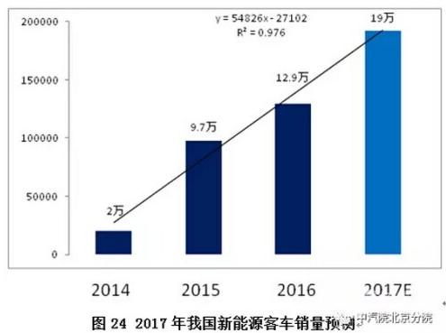 經(jīng)計(jì)算,預(yù)計(jì)2017年新能源客車銷量為19萬(wàn)輛。