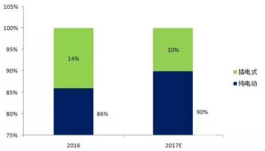 在新能源公交比重繼續(xù)擴(kuò)大的基礎(chǔ)上,純電動(dòng)公交,特別是快充類比重將進(jìn)一步擴(kuò)大。2017年新能源補(bǔ)貼政策對(duì)快充類客車身份予以認(rèn)可并給出明確補(bǔ)貼。因公交車有固定的路線與公交場(chǎng)站,5-15分鐘的快速補(bǔ)電,可以解決充電難問(wèn)題,也完全滿足城市公交的運(yùn)營(yíng)要求,預(yù)計(jì)2017年快充類純電動(dòng)客車在公交領(lǐng)域會(huì)有較快發(fā)展。