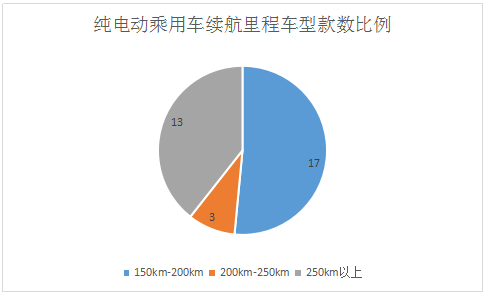 在33款純電動乘用車車型中,能量密度在90Wh/kg-120Wh/kg的車型共有15款,在120Wh/kg以上的車型共有18款。純電動乘用車續(xù)航里程均在150km以上,其中續(xù)航里程在150km-250km之間的車型有20款,在250km以上的車型有13款。從電池能量密度和續(xù)航里程來看,第三批推薦目錄中能夠拿到1.1倍補貼的純電動乘用車占比超過50%,續(xù)航里程在200km以下的車型有14款,在250km以上的車型有13款,整體趨勢向高低兩端靠攏。在插電式混合動力乘用車方面,續(xù)航里程主要分布在60km-80km之間。在38款新能源乘用車車型中,有34款車搭載的動力電池為三元鋰電池,占比近90%。