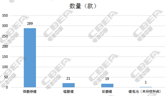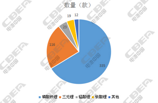 因?yàn)楸九渭冸妱?dòng)客車申報(bào)數(shù)量最多,且目前純電動(dòng)客車應(yīng)用的動(dòng)力電池還是以磷酸鐵鋰電池為主,本批次公示中配套的磷酸鐵鋰電池共335款,占比達(dá)66%;其次為三元鋰電池116款,占比23%;錳酸鋰電池23款;鈦酸鋰電池19款;其他(未標(biāo)明種類)12款。