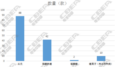專用車的電池主要是定額補(bǔ)貼,因此電池的三元化趨勢(shì)不明顯。第三批目錄共有142款新能源專用車型入圍,其中搭載三元電池的車型有88款,占比62%;搭載磷酸鐵鋰電池的有42款,占比30%;搭載錳酸鋰電池的有2款,占比1%;搭載鋰離子電池(未注明種類)的有10款,占比7%。
