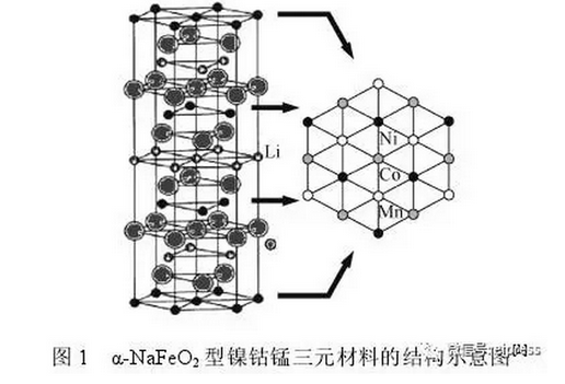 333型、523型和811型等三元材料均屬于六方晶系的α-NaFeO2型層狀巖鹽結構,如圖1。