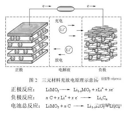 鎳鈷錳三元材料中,3種元素的的主要價態(tài)分別是+2價、+3價和+4價,Ni為主要活性元素。其充電時的反應及電荷轉移如圖2所示。