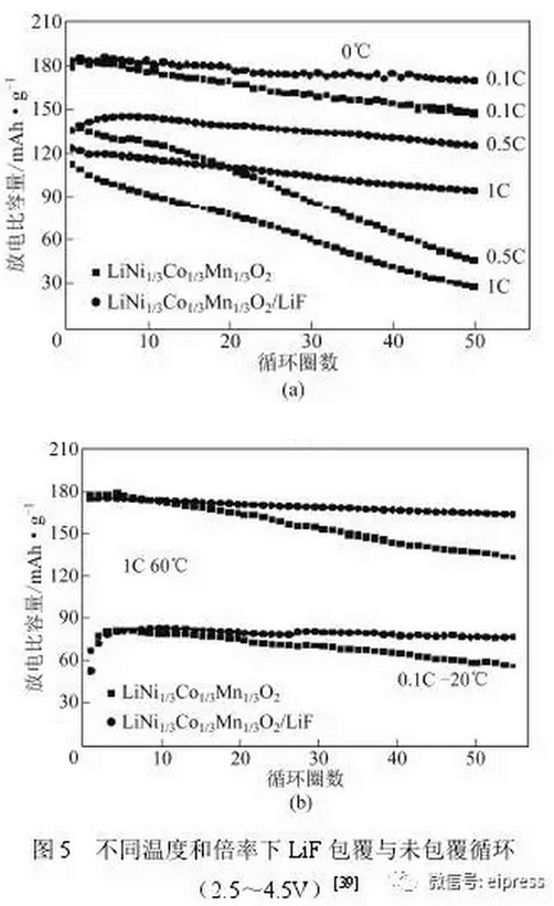 不管是高溫(60℃)還是低溫下(0、?20℃),LiF包覆的均優(yōu)于未包覆的(圖5)。