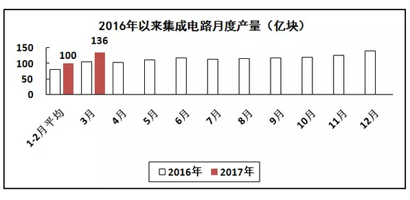 電子器件行業(yè)重點(diǎn)產(chǎn)品產(chǎn)量增速繼續(xù)加快。一季度,生產(chǎn)集成電路337億塊,同比增長26.4%。出口交貨值同比增長14.8%,其中3月份增長13.8%。