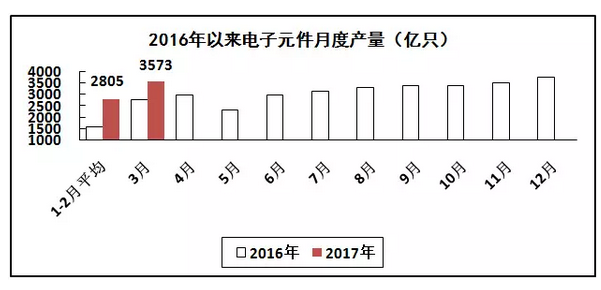 電子元件行業(yè)生產(chǎn)加快。一季度,生產(chǎn)電子元件9094億只,同比增長4%。出口交貨值同比增長11.4%,其中3月份增長17.6%。