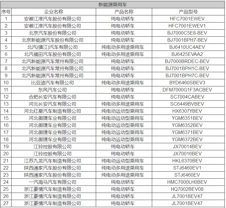 5月12日,工信部公示第296批《道路機(jī)動車輛生產(chǎn)企業(yè)及產(chǎn)品公告》,共有款333新車及底盤產(chǎn)品進(jìn)入目錄,其中新能源乘用車27款,包括純電動乘用車26款,插電式混合動力乘用車1款;其中純電動客車產(chǎn)品(含底盤)159款、插電式混合動力產(chǎn)品40款、燃料電池客車產(chǎn)品5款;新能源專用車產(chǎn)品102款。