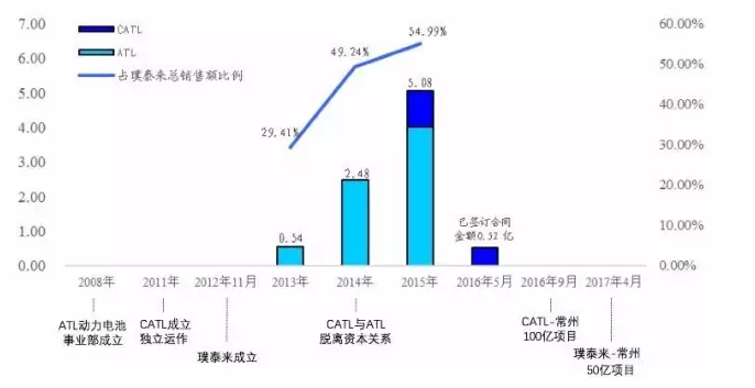 圖5 核心客戶ATL/CATL的歷史沿革與銷售金額(億元)