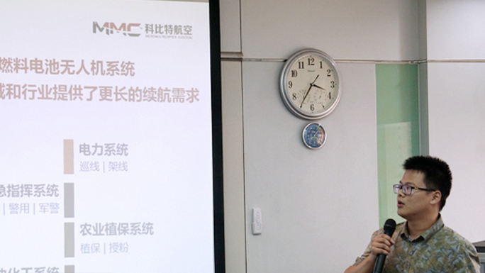 圖為深圳市科比特航空科技有限公司燃料電池系統(tǒng)工程師朱陳奕作主題發(fā)言