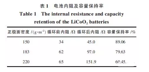 1.2面密度對(duì)電池內(nèi)阻的影響