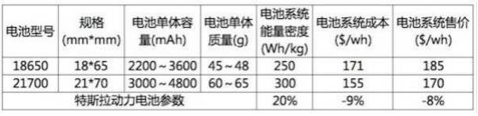 特斯拉推出21700電池并非是想引領(lǐng)技術(shù)方向,實際是迫于成本壓力。