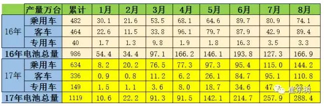 從產(chǎn)量結(jié)構(gòu)的變化看,17年8月的客車(chē)用電池占比38%,較16年全年的54%下降較大。但8月的客車(chē)占比達(dá)到38%,算是恢復(fù)的較好。乘用車(chē)總體看是占產(chǎn)量需求的82%和電池需求的57%,仍是引領(lǐng)消費(fèi)增長(zhǎng)的核心動(dòng)力。但8月體現(xiàn)的客車(chē)恢復(fù)較好。