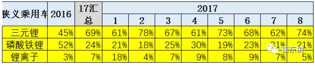 專(zhuān)用車(chē)的三元化趨勢(shì)很明顯。1-8月的三元電池的裝車(chē)量達(dá)到58%的占比,而16年的占比是20%,提升的趨勢(shì)相對(duì)是合理的狀態(tài)。