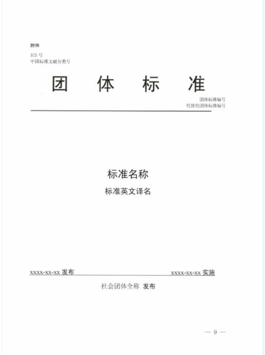 團(tuán)體標(biāo)準(zhǔn)的封面格式應(yīng)當(dāng)符合要求,具體格式見附件。