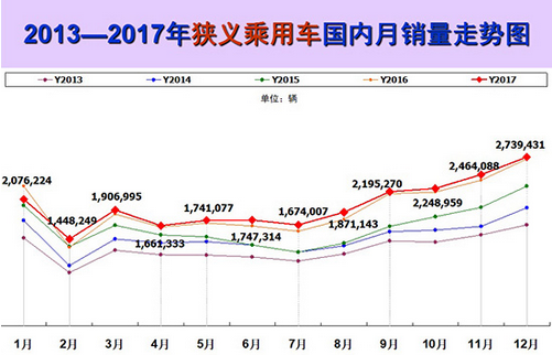 2018年1月9日,全國(guó)乘用車市場(chǎng)信息聯(lián)席會(huì)(以下簡(jiǎn)稱“乘聯(lián)會(huì)”)發(fā)布數(shù)據(jù)顯示:2017年12月我國(guó)狹義乘用車銷量為2739431輛,同比增長(zhǎng)0.7%,環(huán)比漲幅為11.2%。由此,我國(guó)狹義乘用車市場(chǎng)全年數(shù)據(jù)也正式出爐,2017年全年,我國(guó)狹義乘用車?yán)塾?jì)銷量達(dá)到23758345輛,同比增速為2.1%。