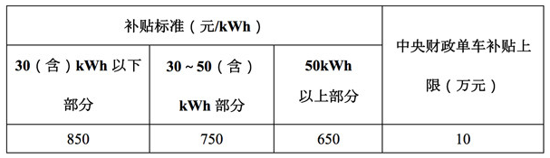 (一)新能源貨車和專用車補貼標準。新能源貨車和專用車以提供驅(qū)動動力的動力電池總儲電量為依據(jù),采取分段超額累退方式給予補貼,具體如下: