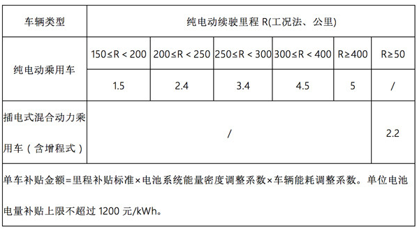 (一)新能源乘用車補貼標準: