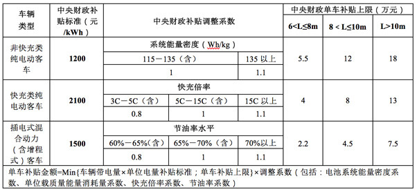 (一)新能源客車補貼標準: